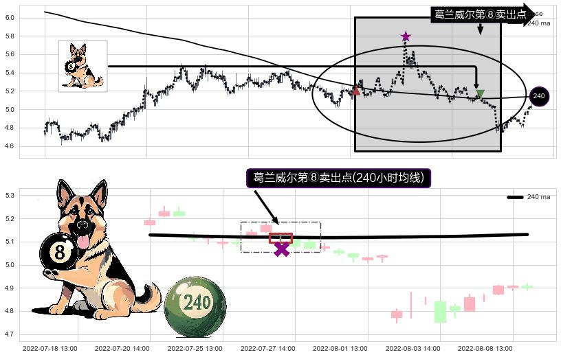 ⚁ 240小时均线 第⑧卖出点 属于 均线服从 信号,属于趋势运行的【常态】即信号期望为下降趋势的中继