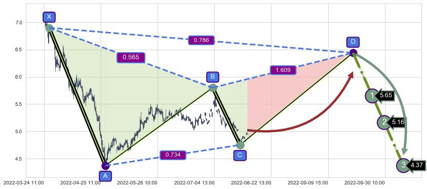 ➣ D点拟合预测价格6.44,距离最后交易收盘价格5.02相差 +28.28%
