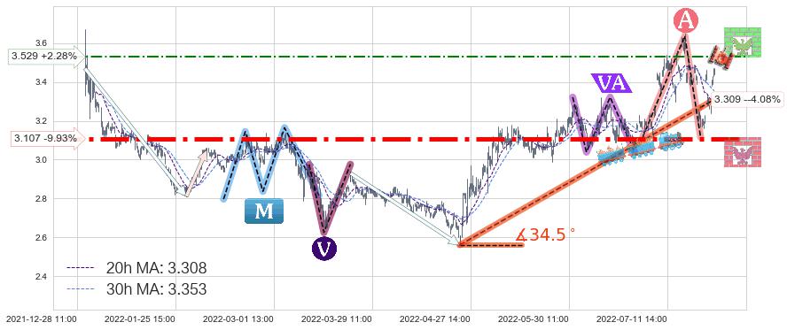 ♞ 20小时均线:3.308,30小时均线:3.353→ 快线<慢线