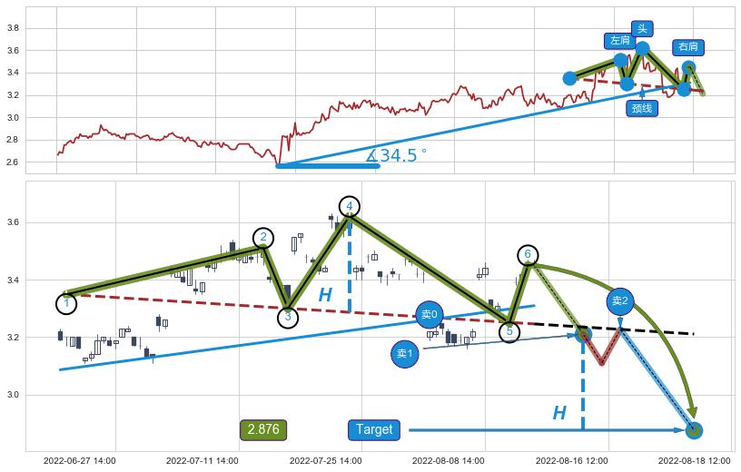 ➣ 最小反转跌幅→𝐇: 0.33351 (头部与颈线垂直距离)