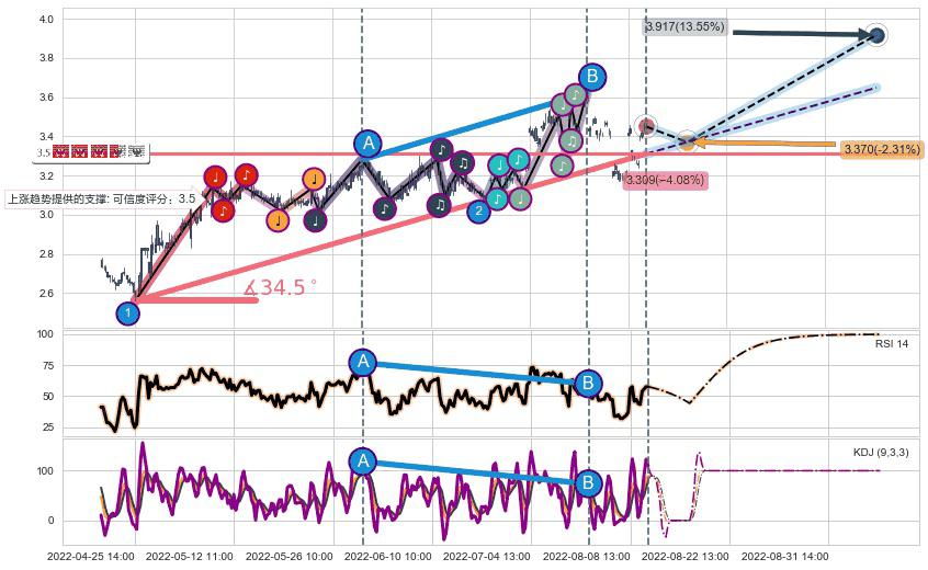 ➢ 预测:2022-08-17 14:00,【小幅回撤】稳定目前上涨趋势的前提下,预测价格:3.370