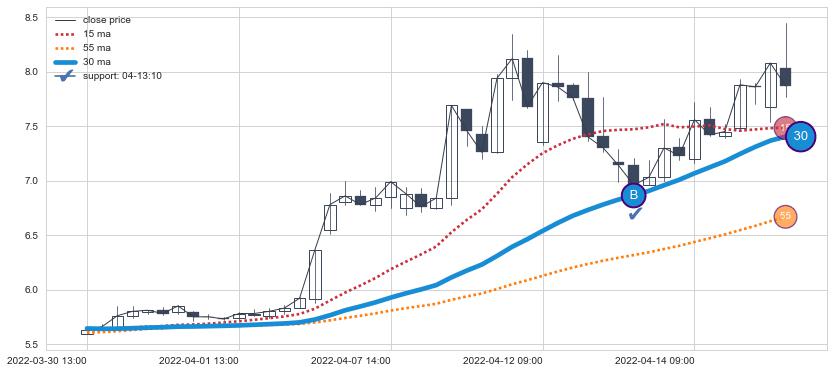 上涨趋势03-30 13:00-04-15 10:00,均线30确认关键支撑1处