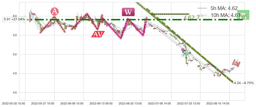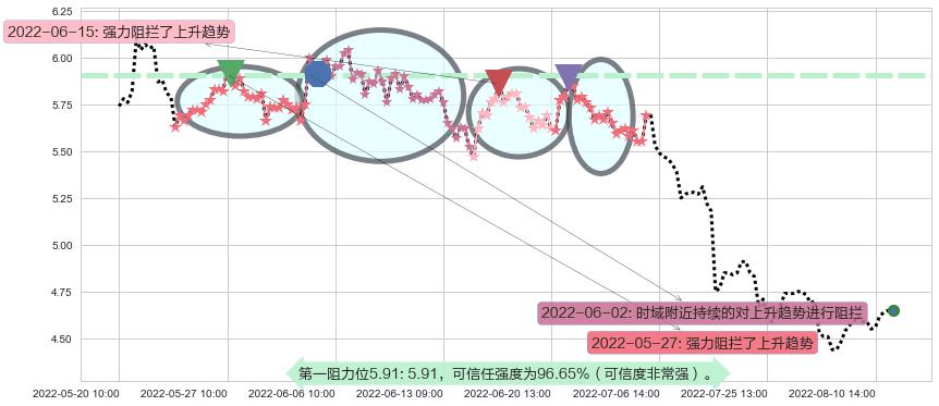 ♘ 阻力价格位5.91,可信任强度96.65%,距离最后交易2022-08-12 14:00形成的收盘价格4.65相差 +27.04%