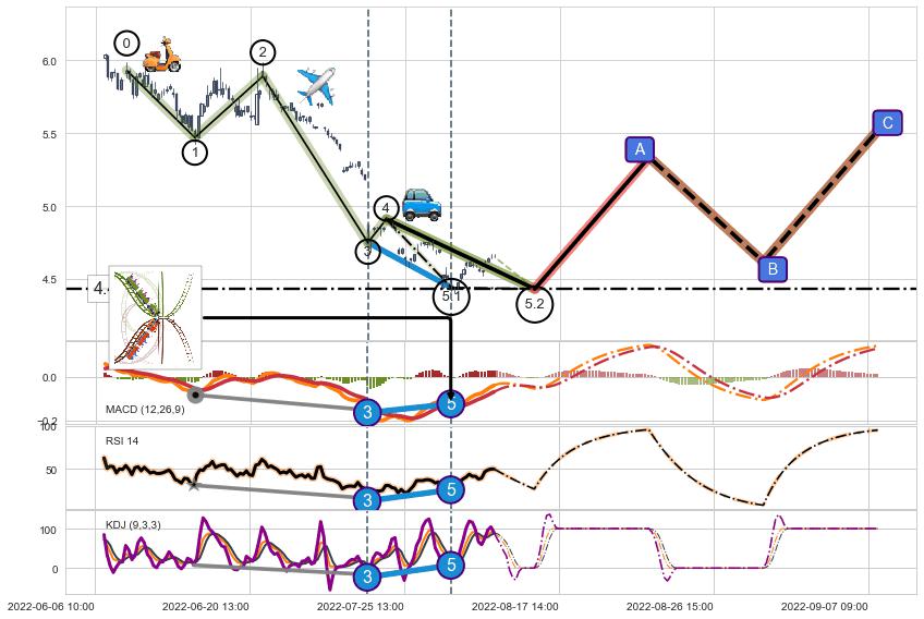 ➣ 5.1: 预测当前第5浪位置(08-03:14, 4.44),仍然有下跌空间