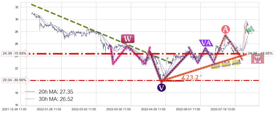 ♘ 支撑价格位24.38,可信任强度86.97%,距离最后交易2022-08-12 14:00形成的收盘价格29.00相差 -15.93%