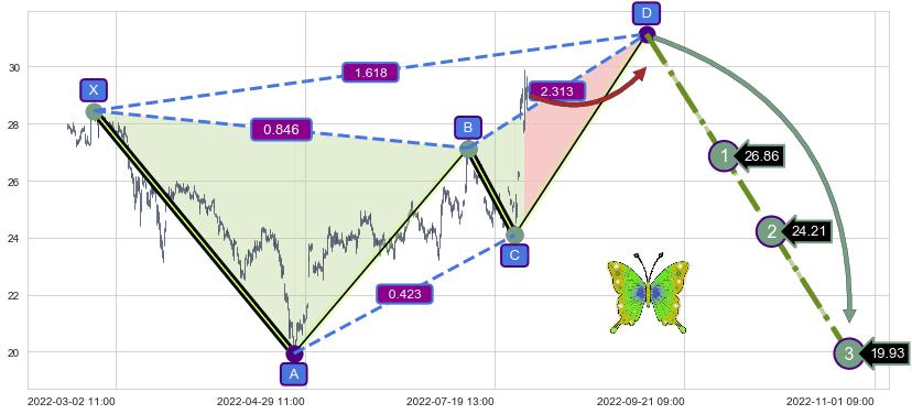 ➣ 未完成【蝴蝶】形态起点X: 02-23:14, 已到达C点: 08-02:14, 预测最终D点: 09-12:11, 共578交易小时