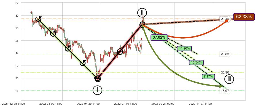 ➣ D点拟合预测价格31.14,距离最后交易收盘价格29.00相差 +7.39%