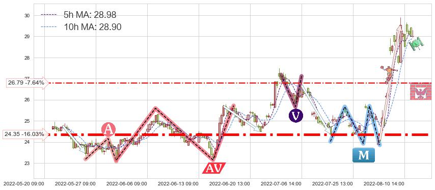 ♘ 支撑价格位24.35,可信任强度96.73%,距离最后交易2022-08-12 14:00形成的收盘价格29.00相差 -16.03%