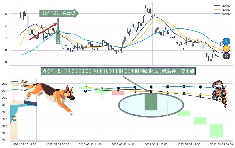 ⚀ 2022-05-24 09:00:00小时显现 20小时-30小时-60小时均线 【绝命跳】卖出点 看空信号,后市看跌,卖出
