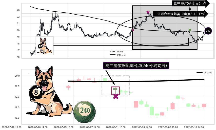 ⚁ 240小时均线 第⑧卖出点 属于 均线服从 信号,属于趋势运行的【常态】即信号期望为下降趋势的中继