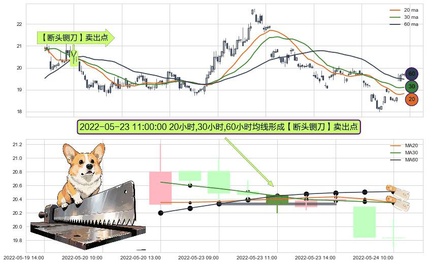 ⚀ 2022-05-23 11:00:00小时显现 20小时-30小时-60小时均线 【断头铡刀】卖出点 看空信号,后市看跌,卖出