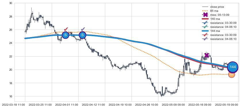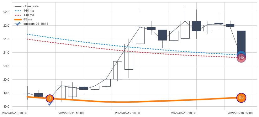 ⚂ 2022-06-14 09:00:00-小时均线向上突破,2022-07-29 13:00:00-小时重新下穿均线破位,均线阻力再次生效