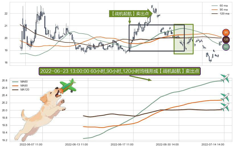 ⚀ 2022-06-13 09:00:00小时-2022-07-14 13:00:00小时显现 60小时-90小时-120小时均线 【战机起航】卖出点 看空信号,后市看跌,卖出