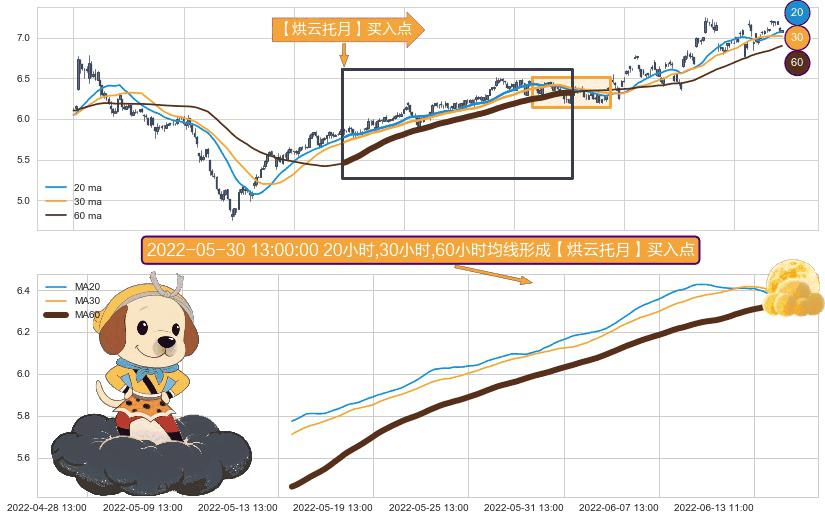 ⚀ 2022-05-16 10:00:00小时-2022-06-14 13:00:00小时显现 20小时-30小时-60小时均线 【烘云托月】买入点 看多信号,后市看涨,买入