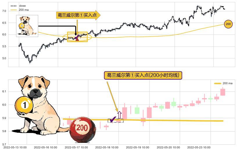 ⚀ 2022-05-18 10:00:00-小时显现 葛兰威尔均线 200小时均线 第买①入点 走势反转见底信号,后市看涨,买进信号