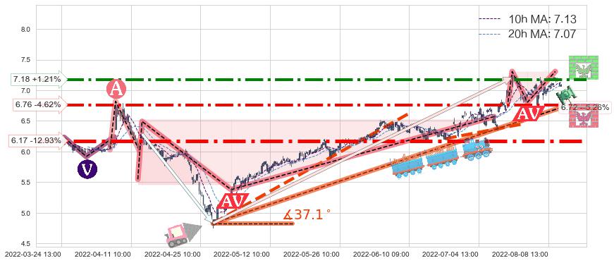 ♘ 阻力价格位7.18,可信任强度72.65%,距离最后交易2022-08-12 14:00形成的收盘价格7.09相差 +1.21%
