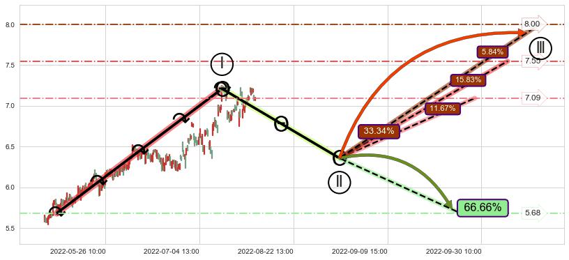 ♘ 支撑价格位6.17,可信任强度88.83%,距离最后交易2022-08-12 14:00形成的收盘价格7.09相差 -12.93%
