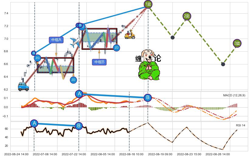 ➣ 【未完成】缠论 起点:06-22:14, 完成第1中枢A,完成第2中枢B,到达08-12:14
