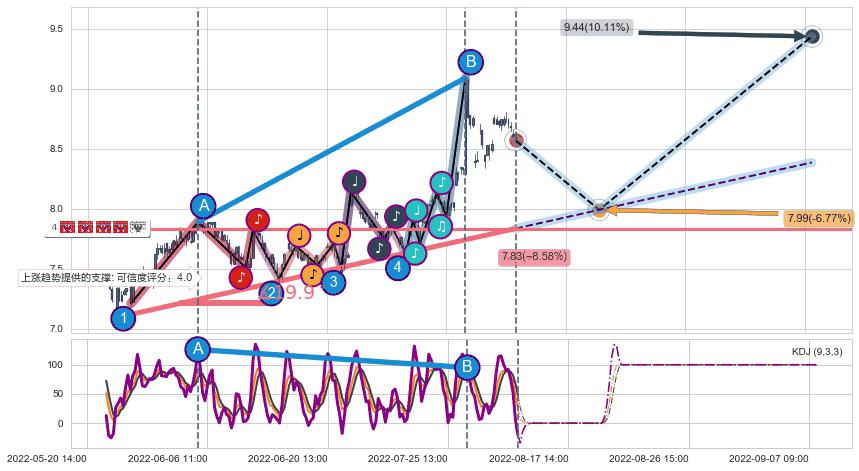 ➣ 预测:2022-09-07 12:00,【继续上扬】稳定目前上涨趋势的前提下,预测价格:9.44