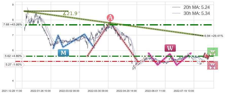 ♞ 20小时均线:5.24,30小时均线:5.34→ 快线<慢线