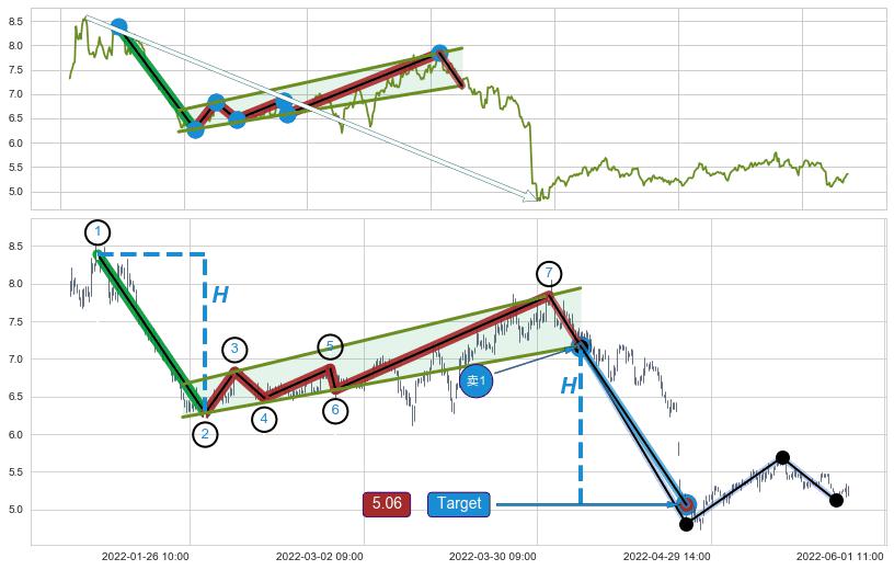 ➣ 最小中继整理跌幅→𝐇: 2.110 (𝐇旗杆的长度:旗杆起点→顶点)