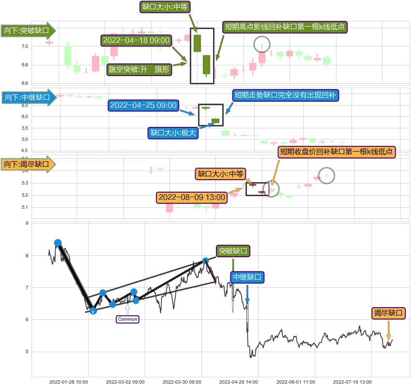 ➢ 2022-08-09 13:00形成:向下跳空【竭尽】缺口