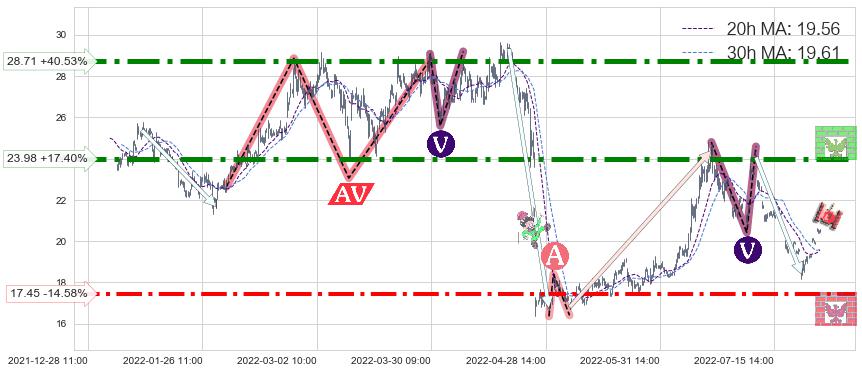 ♞ 20小时均线:19.56,30小时均线:19.61→ 快线<慢线