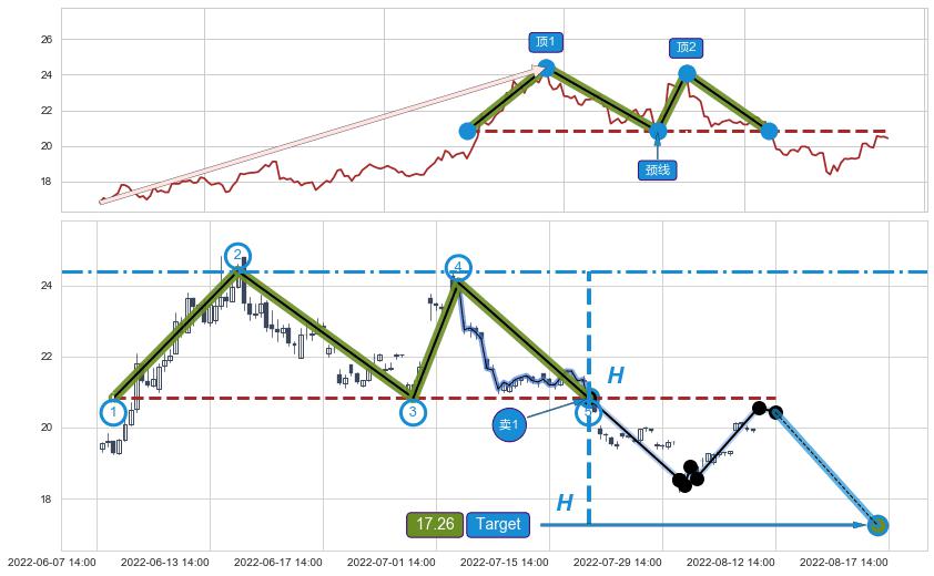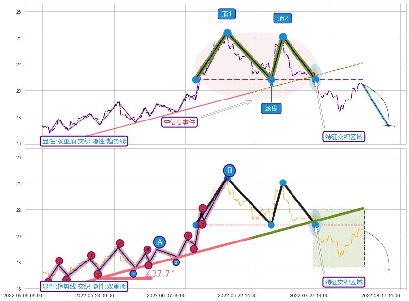 ➣ 【已确认突破】双重顶 起点:06-08:11,突破点:07-21:13,形态共85交易小时