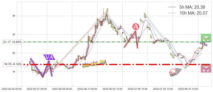 ♘ 支撑价格位18.78,可信任强度89.30%,距离最后交易2022-08-12 14:00形成的收盘价格20.43相差 -8.10%