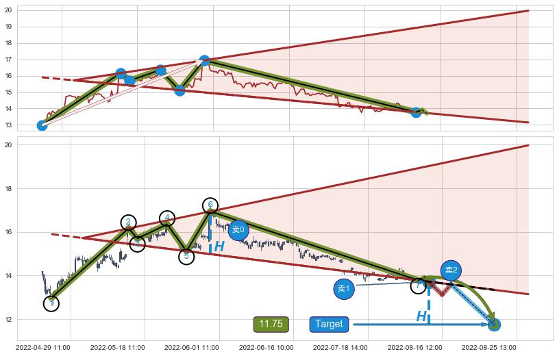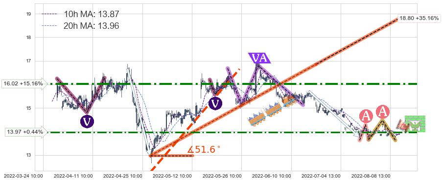 ➣ 【仅预测突破】最后价格:13.91与预测突破价格:13.71→【空间中等】后续最小【反转】第一目标价格→(08-23:12: 11.75 )