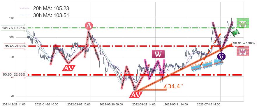 ♘ 阻力价格位104.76,可信任强度59.55%,距离最后交易2022-08-12 14:00形成的收盘价格104.50相差 +0.25%