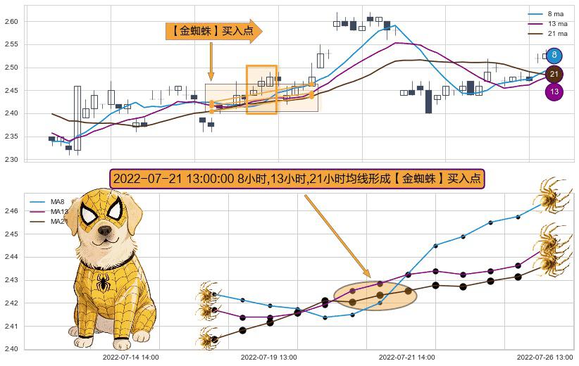 ⚀ 2022-07-21 13:00:00小时显现 8小时-13小时-21小时均线 【金蜘蛛】买入点 看多信号,后市看涨,买入