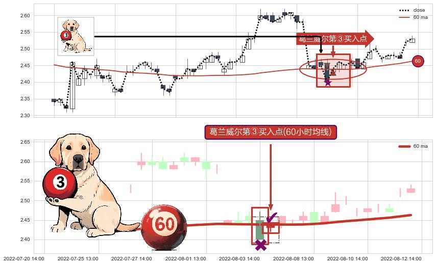 ⚀ 2022-08-04 13:00:00-小时显现 葛兰威尔均线 60小时均线 第③买入点 上升趋势的中继信号,后市看涨,买进信号