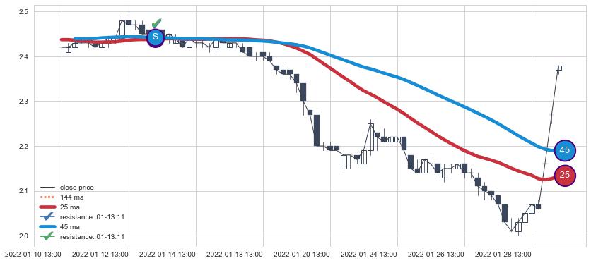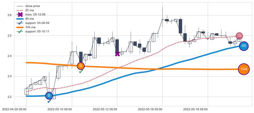 ⚂ 2022-05-31 14:00:00小时突然冒出一根大阳线,一下子顶穿三条均线且收盘价收在各条均线之上