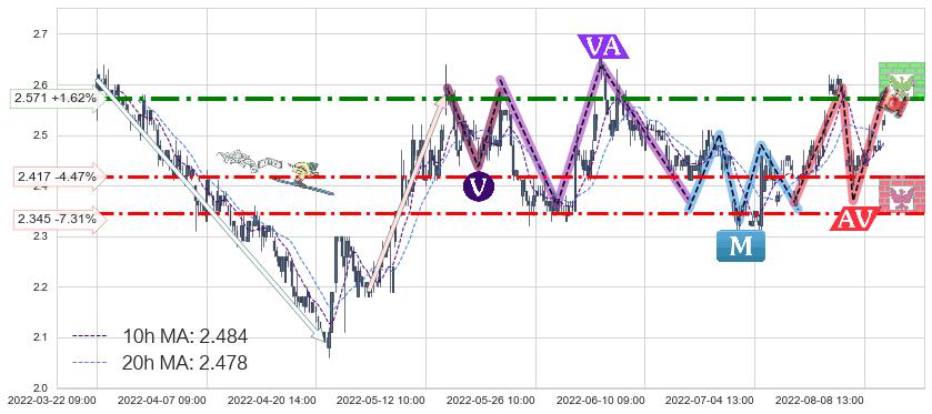♘ 阻力价格位2.571,可信任强度80.48%,距离最后交易2022-08-12 14:00形成的收盘价格2.530相差 +1.62%