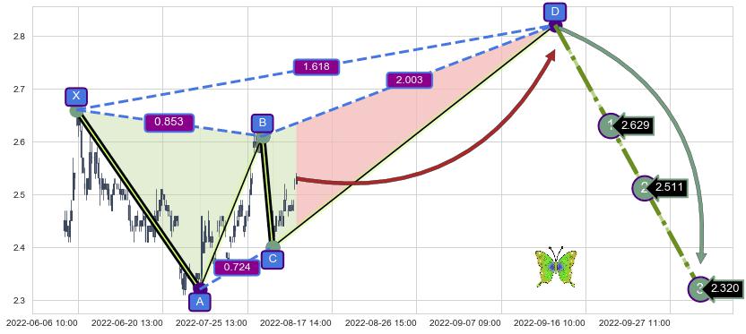➣ 未完成【蝴蝶】形态起点X: 06-06:09, 已到达C点: 08-03:14, 预测最终D点: 09-13:13, 共284交易小时