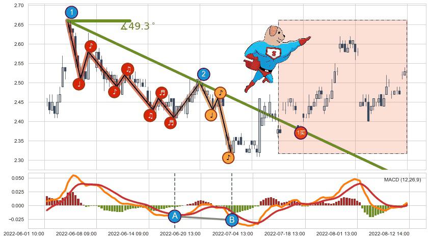 ⚔️ 2022-06-06 09:00-2022-07-20 14:00下跌趋势存在反转上涨[机会],其原下跌趋势的阻力位(2.252)已被突破[强支撑信号],原下跌趋势角度: 49.3˚