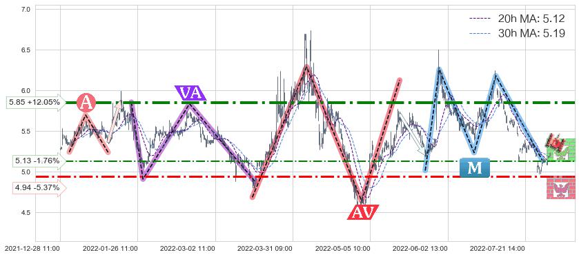 ♞ 20小时均线:5.12,30小时均线:5.19→ 快线<慢线