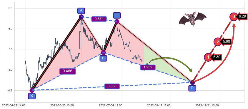➣ 未完成【蝙蝠】形态起点X: 04-27:11, 已到达C点: 06-24:14, 预测最终D点: 10-12:14, 共319交易小时