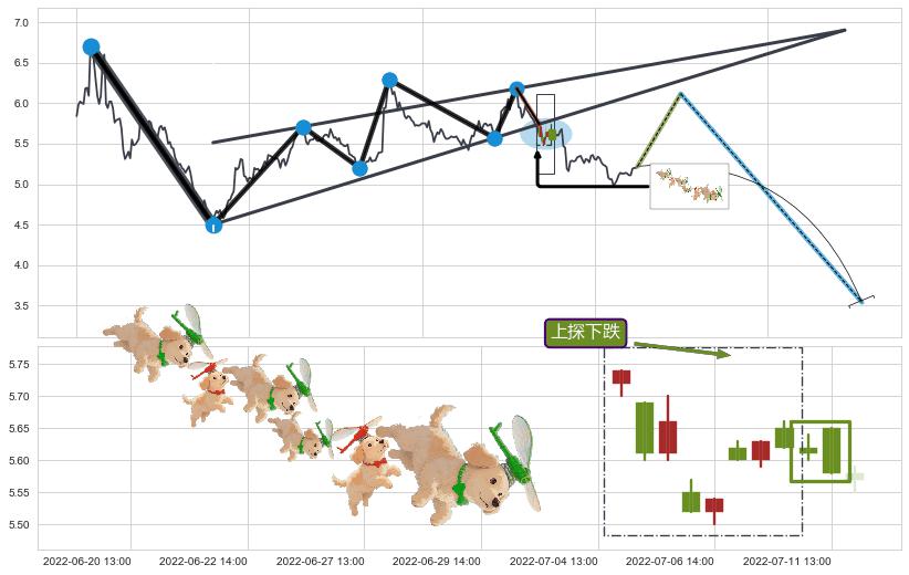 ➣ 收盘价(07-27:14: 5.30 )→回踩→第一根k线高点(07-25:14: 5.32 )