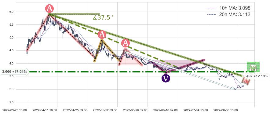 2022-06-13: 第一阻力位3.666有效抑制了下跌浪,成功阻止了价格的继续下跌。