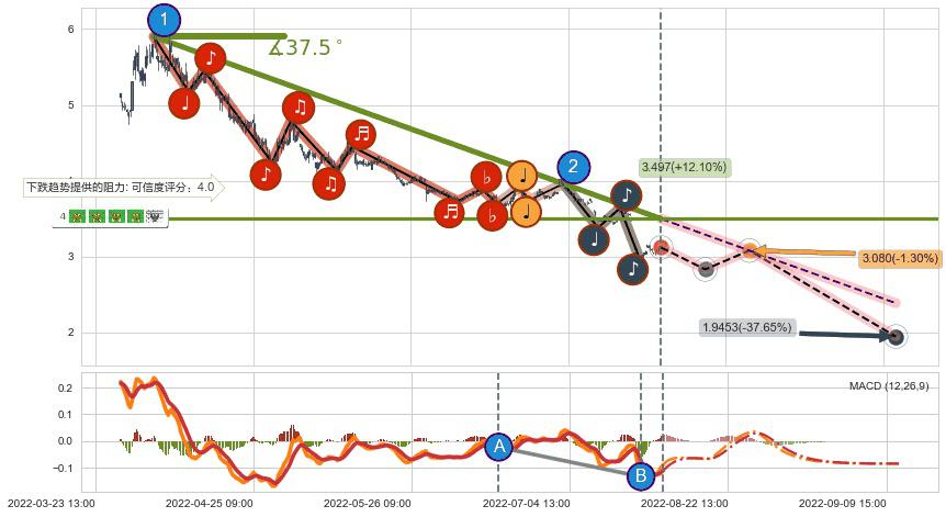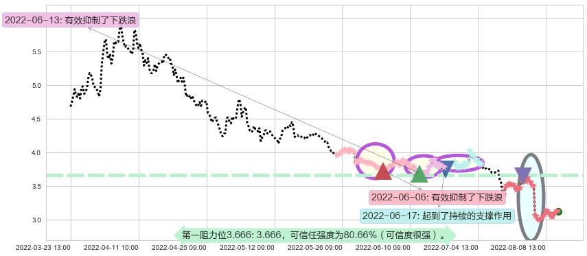 ♘ 阻力价格位3.666,可信任强度80.66%,距离最后交易2022-08-12 14:00形成的收盘价格3.120相差 +17.51%