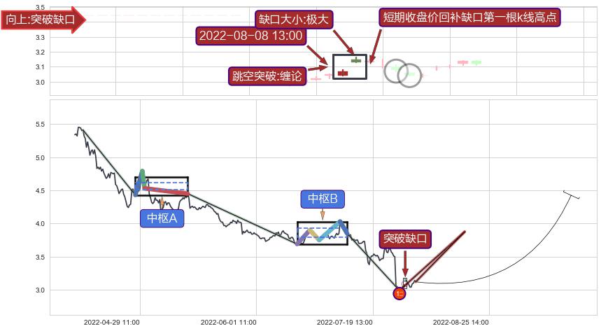 ➢ 2022-08-10 13:00形成:向下跳空【竭尽】缺口