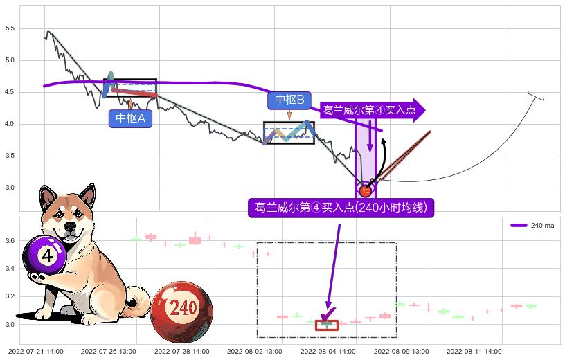 ➢ 收盘价(07-26:14: 3.640 )→再次回踩→第一根k线低点(07-21:14: 3.480 )