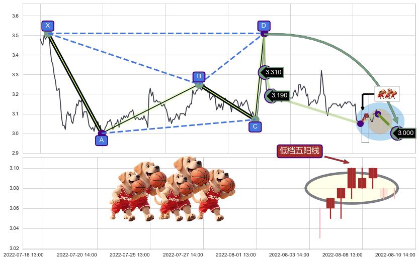 ➣ 已完成【蝙蝠】形态起点X: 04-22:13, 终点D: 06-15:13, 共174交易小时