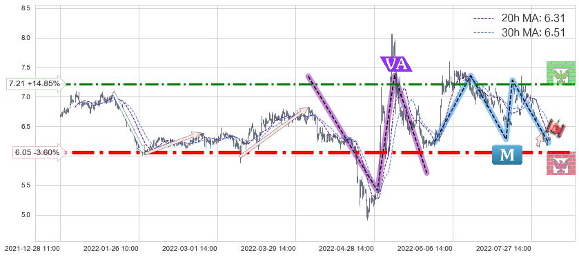 ♘ 阻力价格位7.21,可信任强度65.38%,距离最后交易2022-08-12 14:00形成的收盘价格6.28相差 +14.85%
