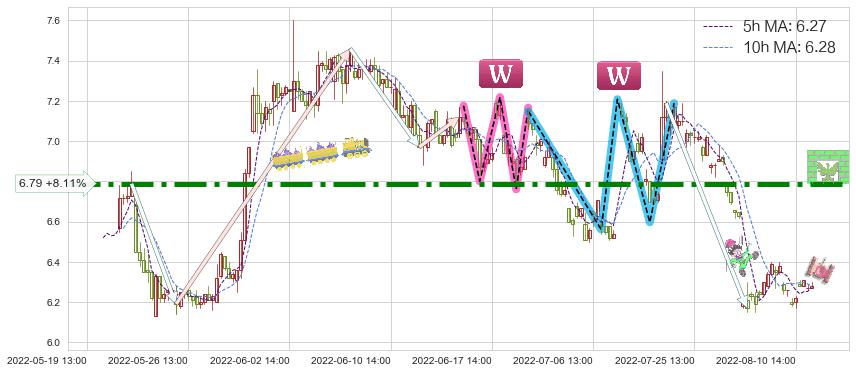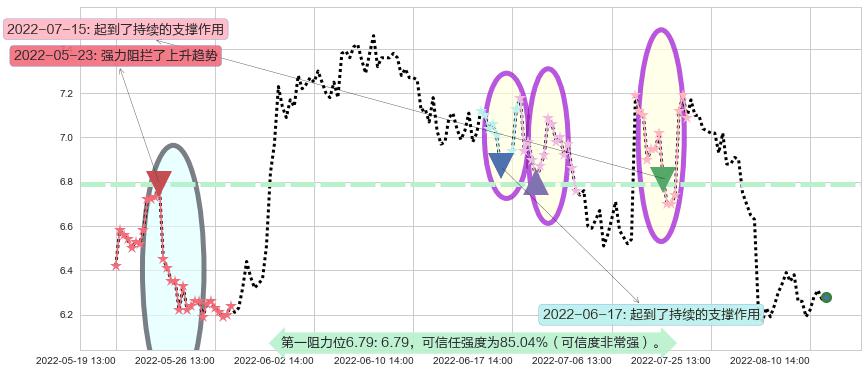 ♘ 阻力价格位6.79,可信任强度85.04%,距离最后交易2022-08-12 14:00形成的收盘价格6.28相差 +8.11%