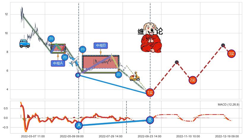 | 3 🅚:【断头铡刀】卖出点 ➕ ☯️:缠论中枢点下降缠中枢B破位后距离1买距离较远,随后猜想后续持续下跌(趋势跟踪) ☞ 看空信号 ⇥ 【均线】交织【图形】⇥ 综合量化分数: 47 | > |