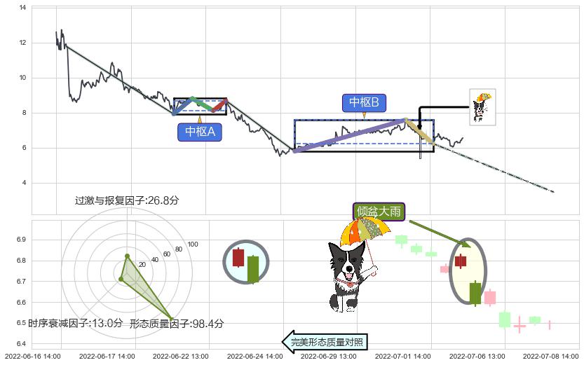 | 4 🅚:【战机起航】卖出点 ➕ ☯️:缠论中枢点下降缠中枢B破位后距离1买距离较远,随后猜想后续持续下跌(趋势跟踪) ☞ 看空信号 ⇥ 【均线】交织【图形】⇥ 综合量化分数: 46 | > |