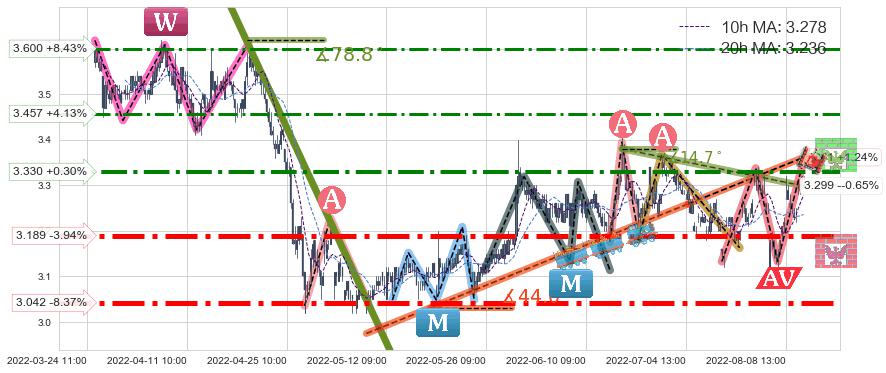 ♘ 阻力价格位3.330,可信任强度80.52%,距离最后交易2022-08-12 14:00形成的收盘价格3.320相差 +0.30%